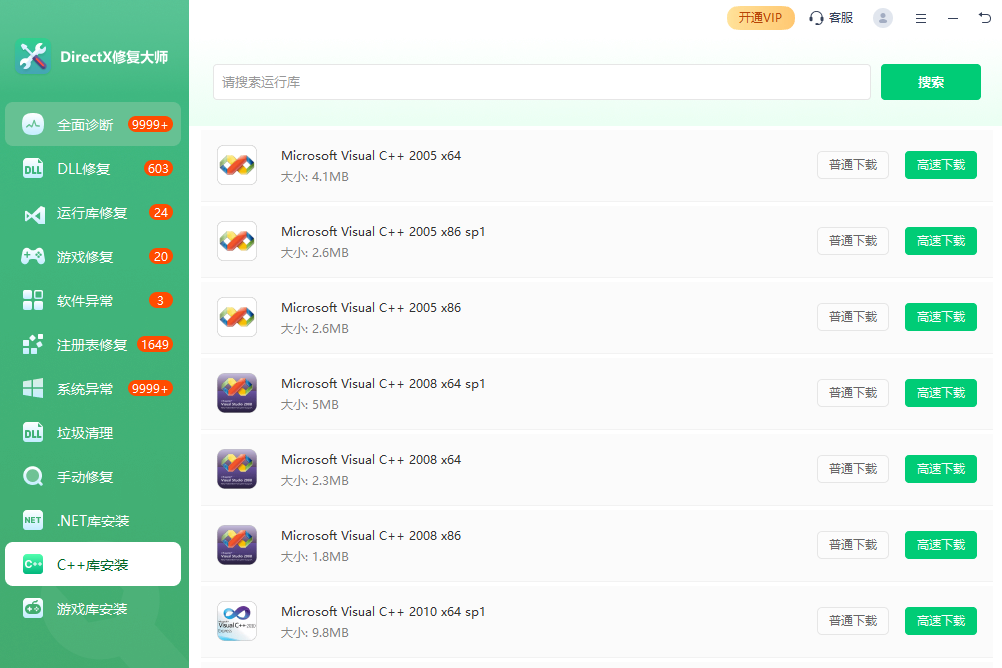 2.全面修复:众多应用和游戏的稳定运行依赖于 Visual C++ 运行库,该工具可智能检测系统中缺失的 VC 组件,并自动完成补全工作,保障应用程序流畅运行,为用户营造稳定的软件使用环境。