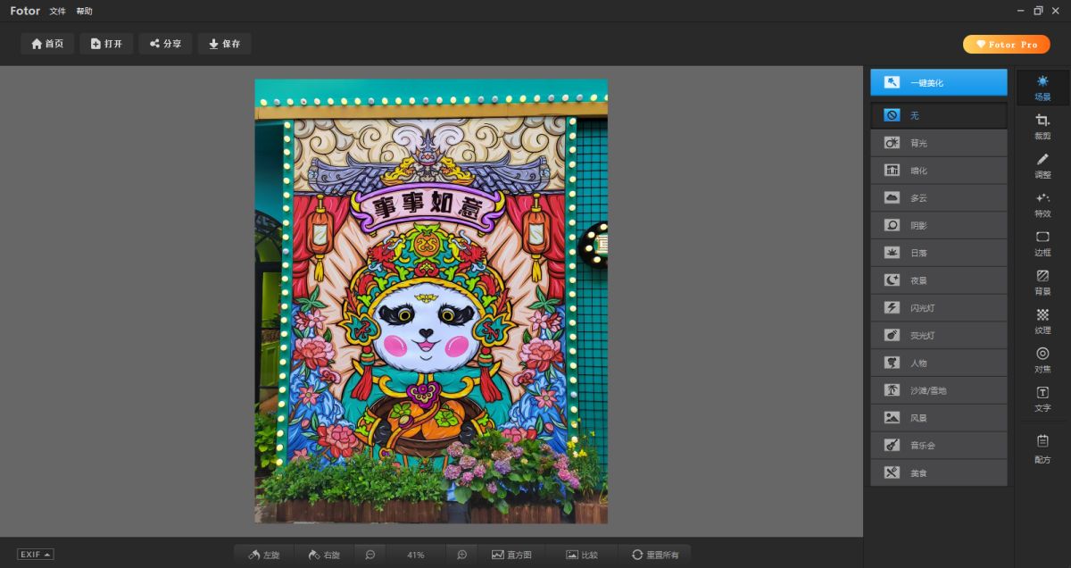 使用一键增强功能将更精确的提升图片的细节和色彩,对图片的曝光度、细节、对比度、亮度等诸多图像特征进行完美升华,让你拍摄的照片瞬间由平凡变得神奇!
