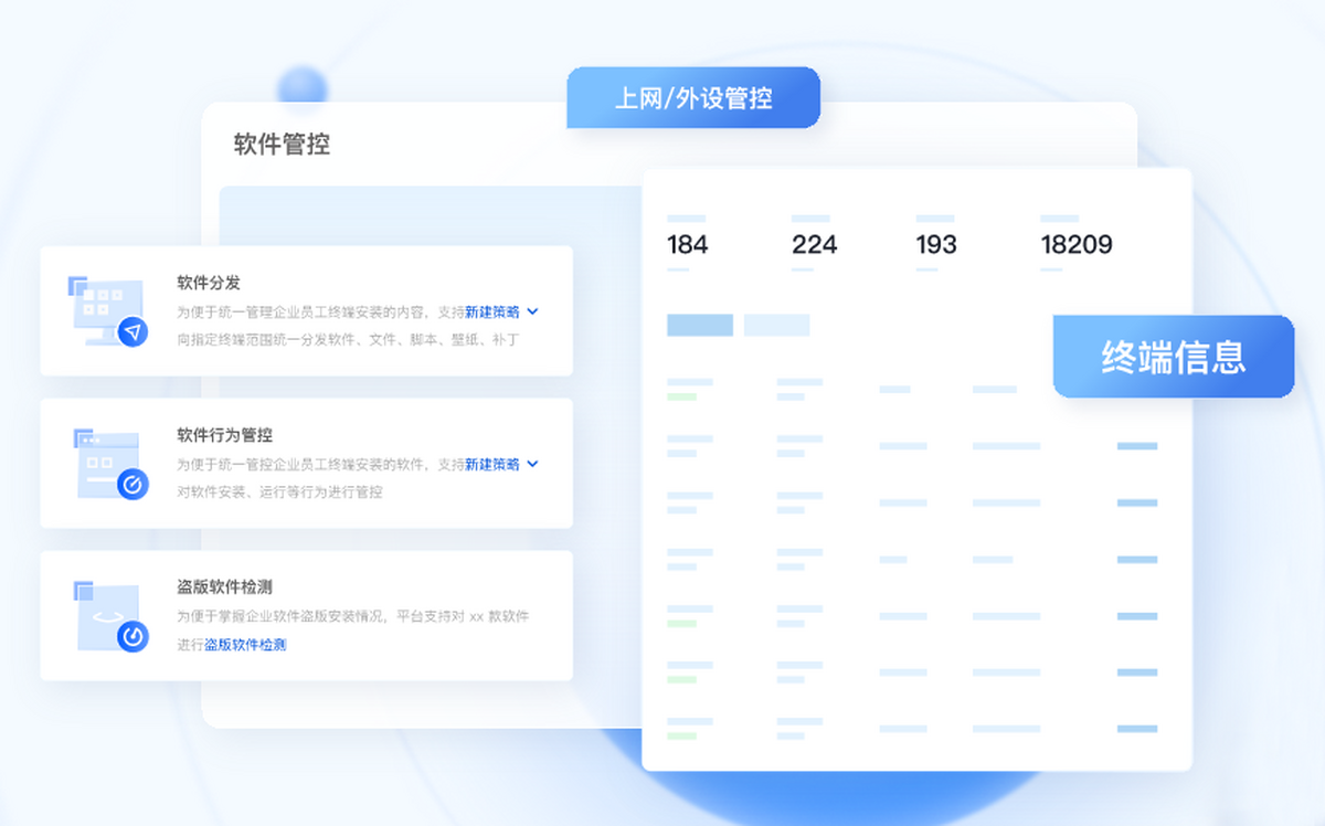 基于身份与设备梳理软件资产,实现自动化软件分发和统计管理,规避盗版和未授权软件的违规使用