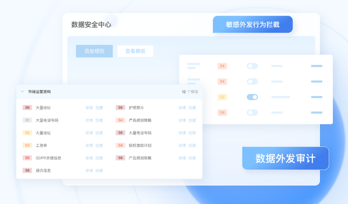 2、全域防护企业数据资产,覆盖资产识别、外发监控、审计溯源、告警拦截、风险分析等全链路,有效防止企业敏感数据未经授权的访问和泄露
