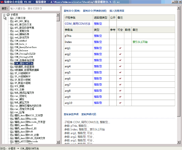 5、关联易语言模块文件,直观查看模块信息,快速查找模块命令,快速引用命令;
