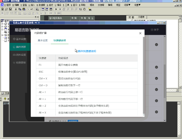 更多功能,下载安装易语言助手,打开助手设置程序的插件列表,发现新世界~