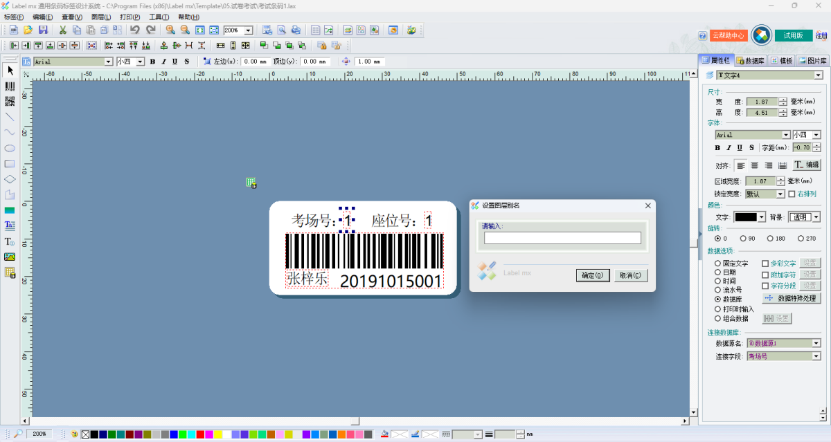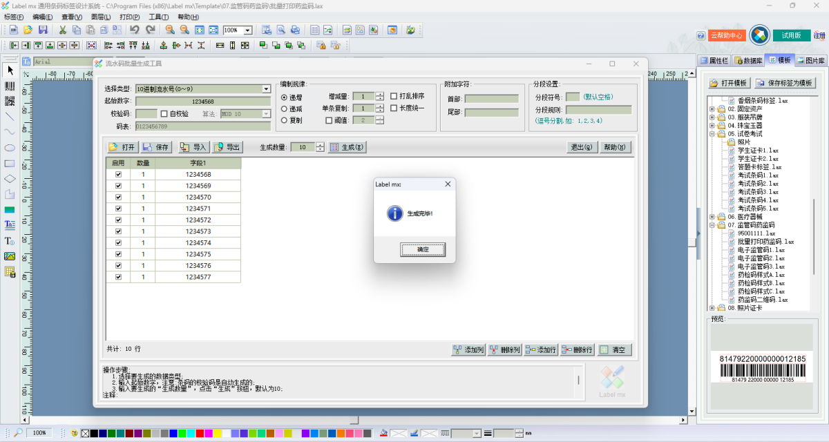 5.支持根据数据库字段里设置的“数量值”来生成打印对应数量的标签;