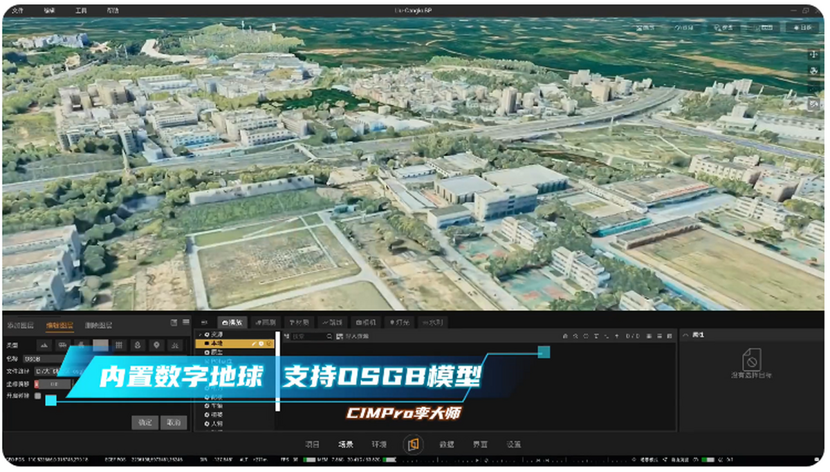CIMPro内置原生数字地球,区别于游戏引擎的局部直角坐标系,可以将任何跨国家跨地区的显示对象的位置进行精准表达,且支持国内各个地方的地方坐标系统。